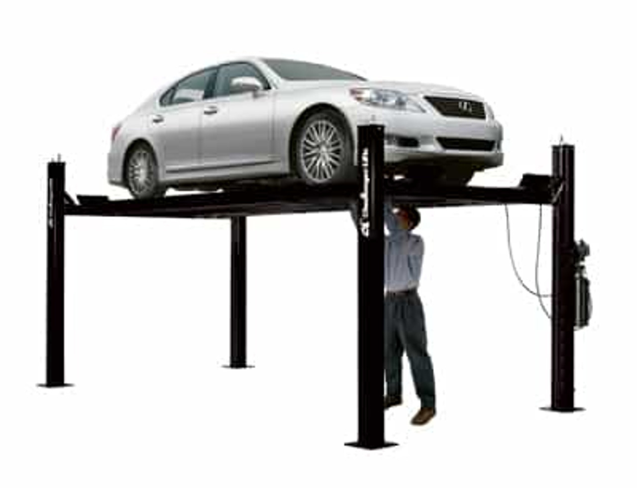 Challenger Lifts’ 9,000 lbs. capacity CL4P9S, CL4P9X and CL4P9W 4-post home car lifts are perfect for light duty commercial service or storage applications. Challenger Lifts 9,000 lbs. 4 post lift and commercial service lift units give you unlimited options for your shop's layout.